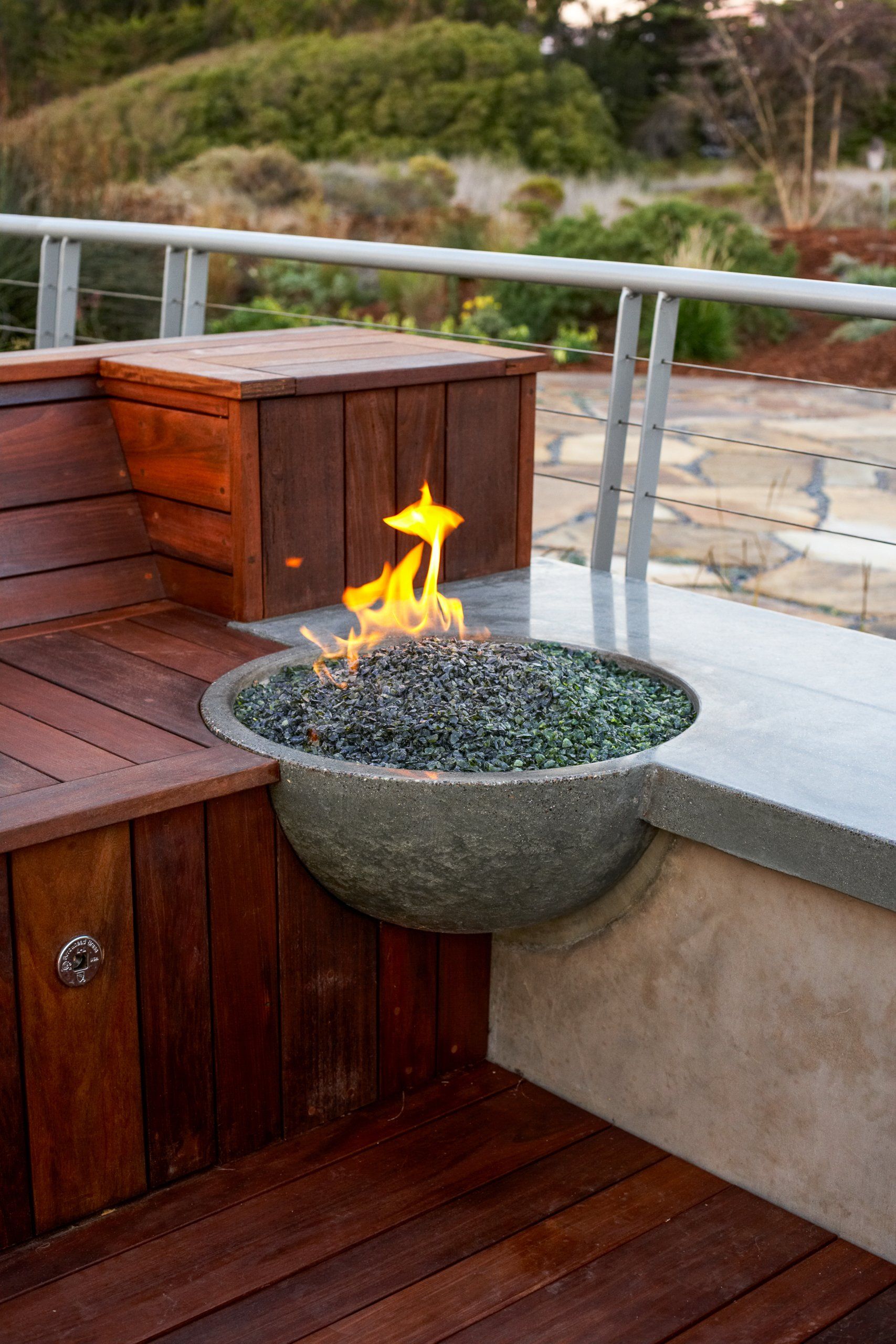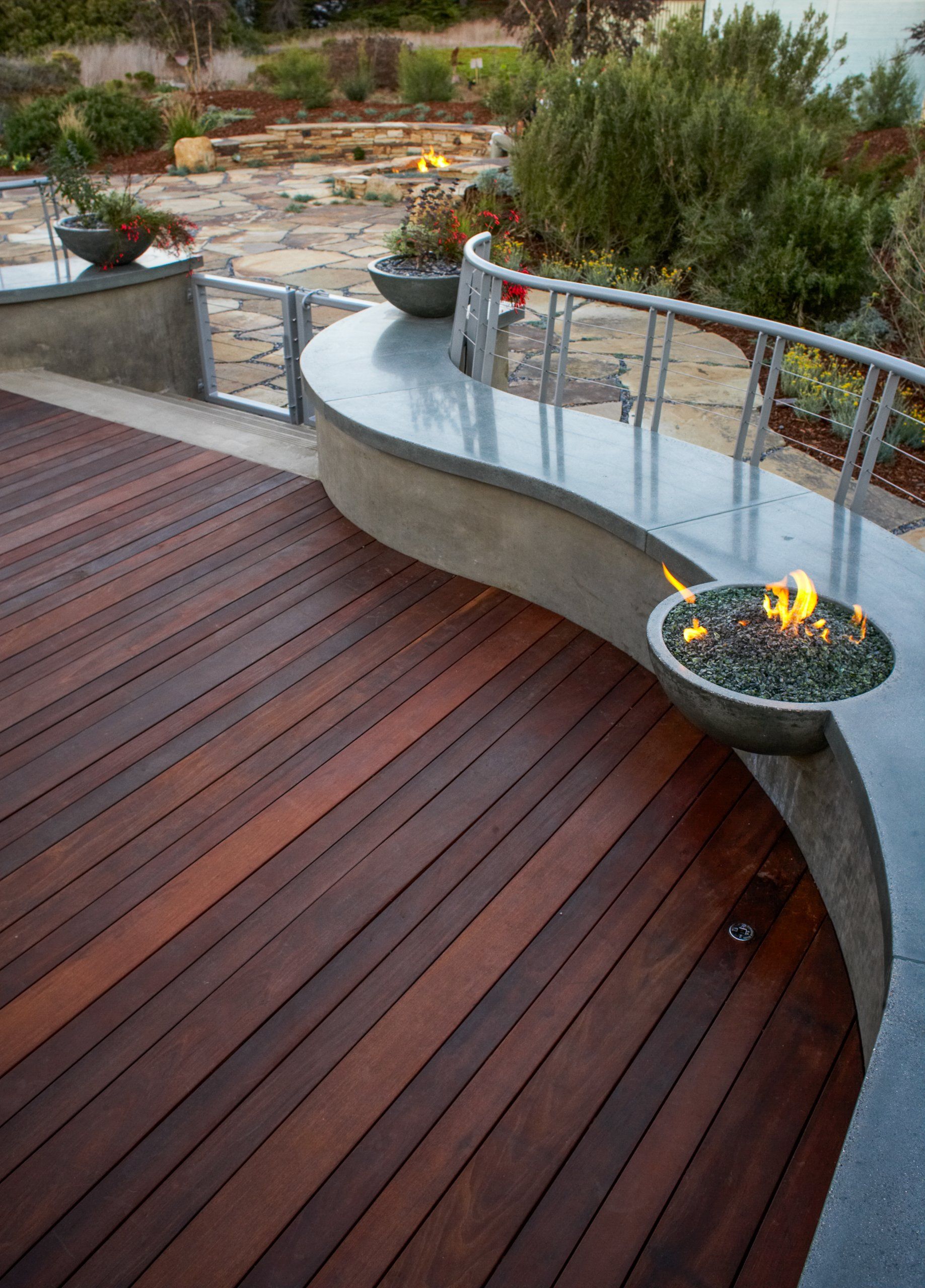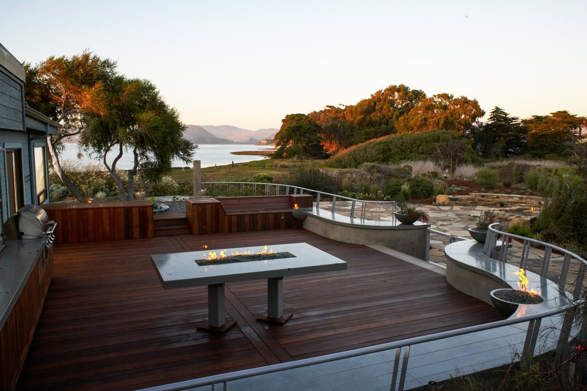 The flowing dynamic os the space invites guests to meander through curving pathways to secluded benches where they can absorb the beauty of the bay and watch the grasses and native juncus dance with the wind. Fire bowls and fire pits were also strategically places throughout the site to encourage the use of this great outdoor space regardless of the time of year.