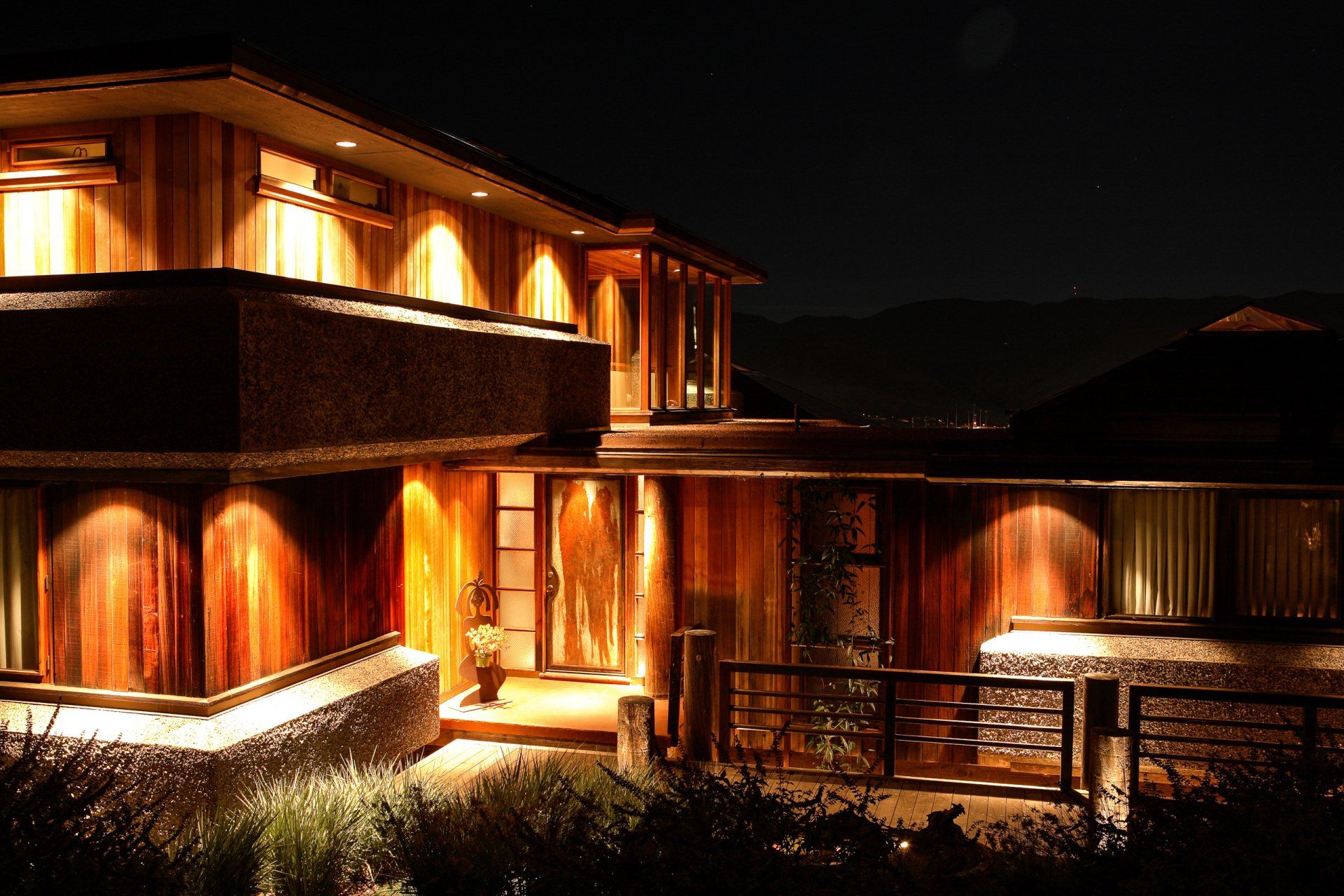A winery and residence, this home is nestled in the hills of Paso Robles wine country. Large stone boulders that had been unearthed during the planting of a vineyard now form the curved wall behind the upper terrace of the pool. Additional stones were placed throughout the landscape as stepping-stones and visual appeal.
