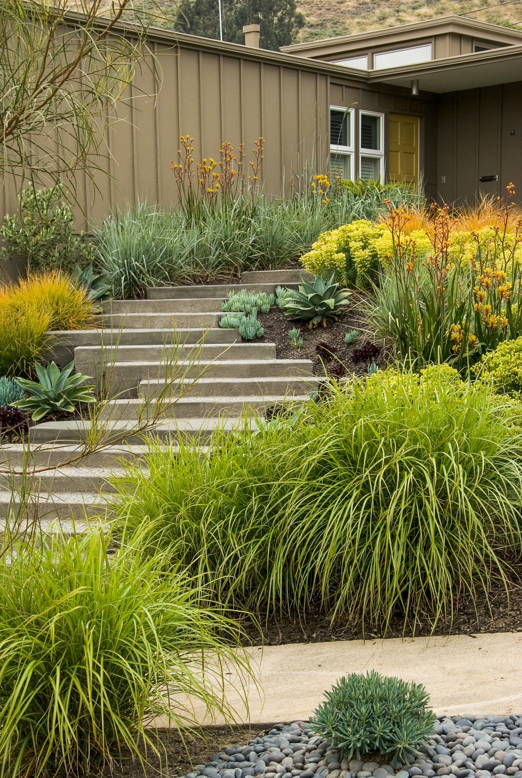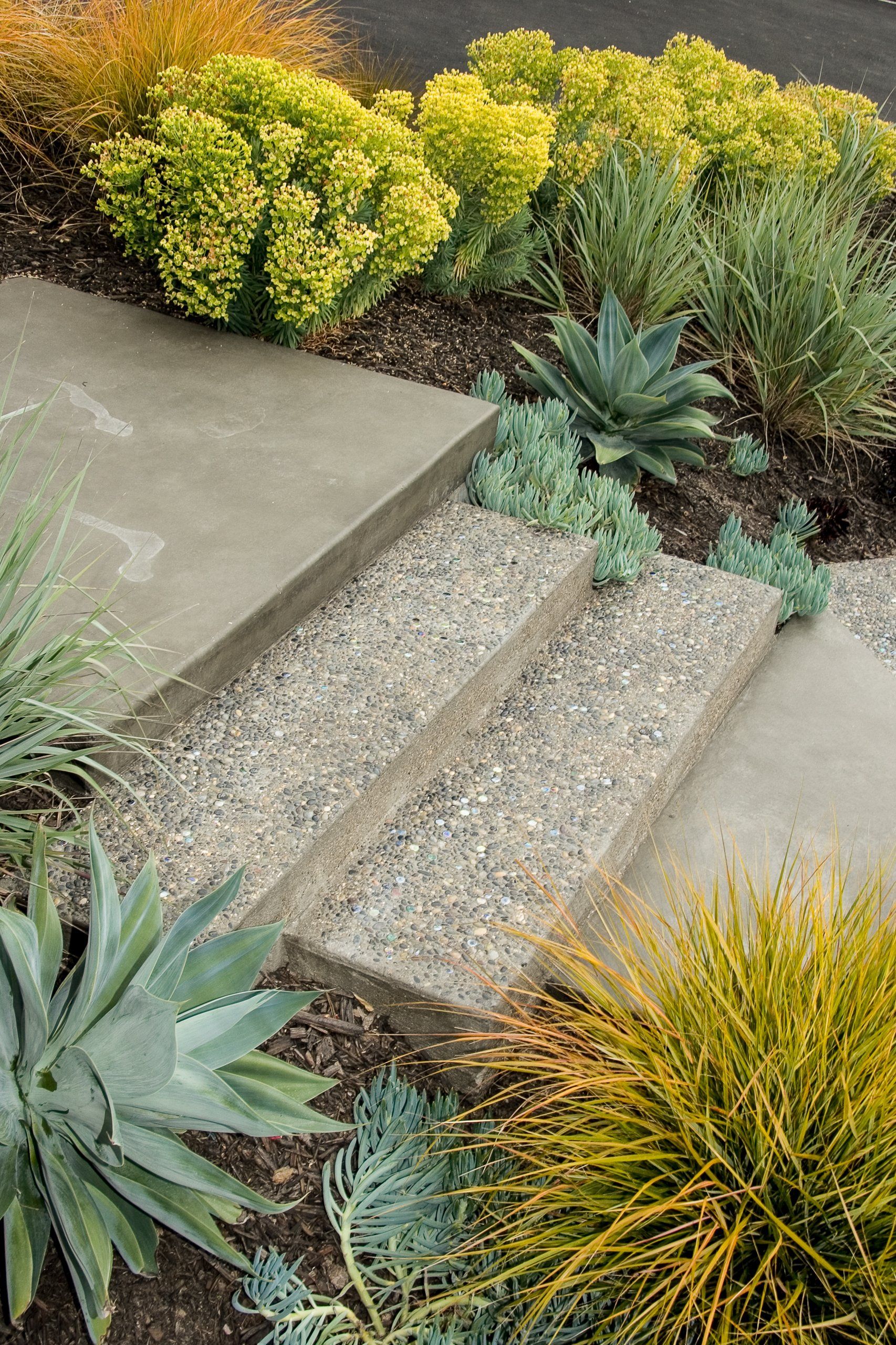 By reducing the driveway’s foot print by 30 percent, we were able to create an invigorated entry experience with wavering steps up to the front door.