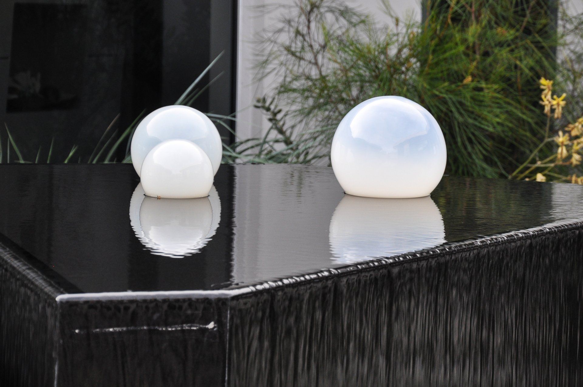 In the back of the house, a hot tub was installed with a spilling water feature across from a vibrant at-grade fire pit creating 2 focal points that carry one’s eye across the garden. These 2 design features also provide a visual play between the juxtaposing elements of fire and water.