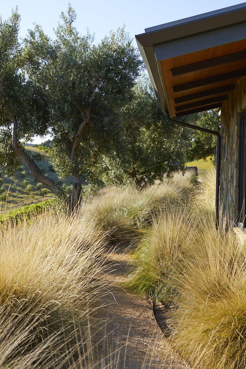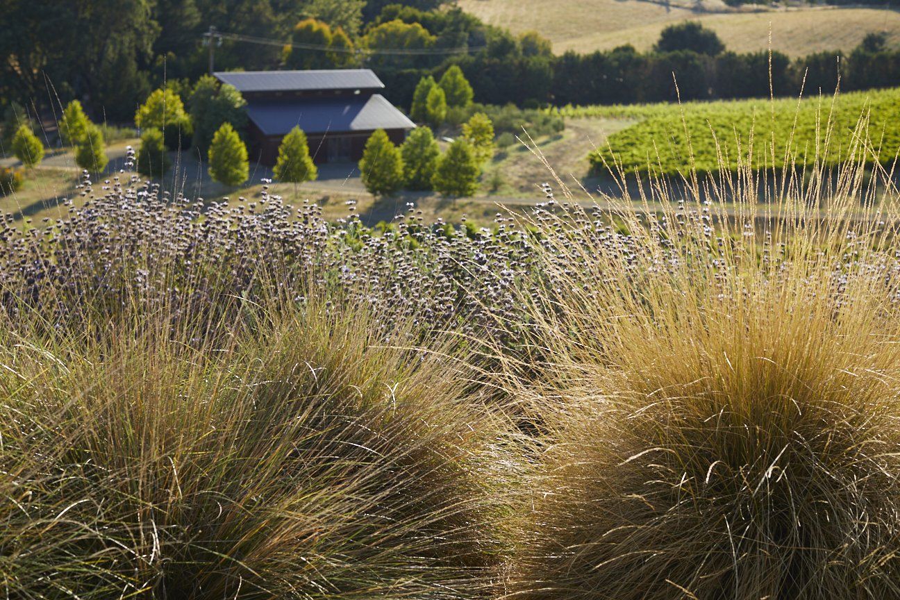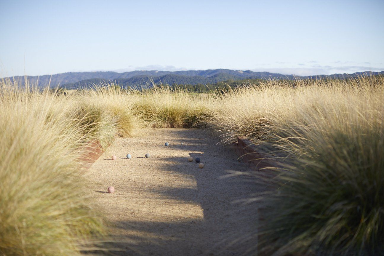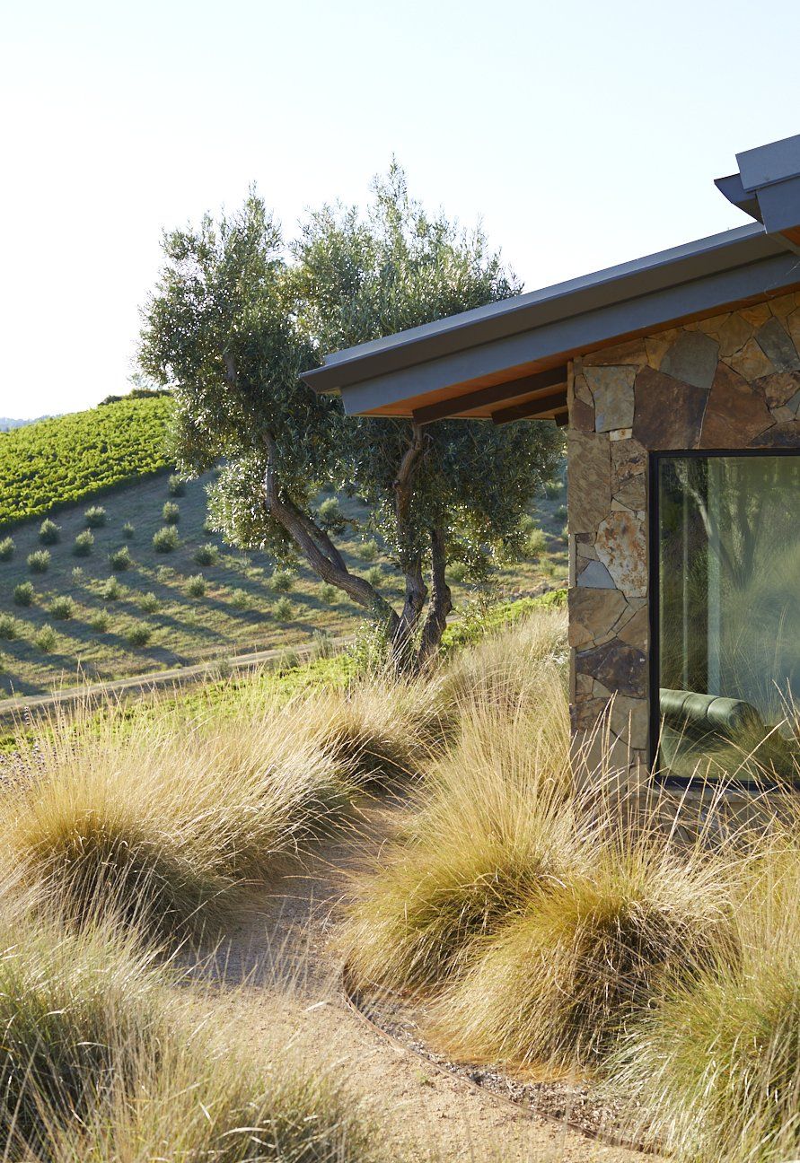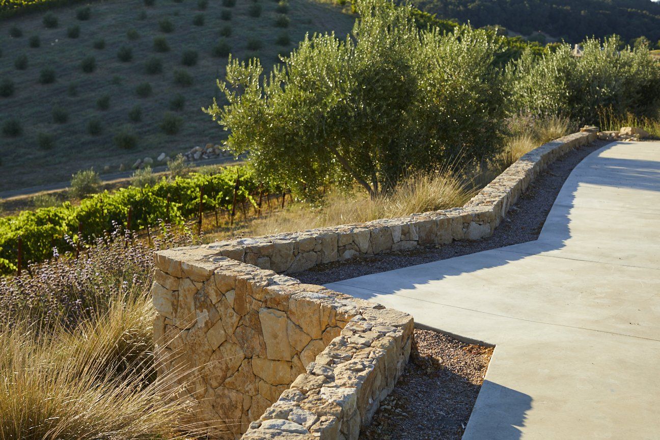 Located on top of a hill surrounded by valley ridgetops this project has 360-degree views of the region. The client's approach to the site was to drop it into part of the hill to keep the privacy and protect against coastal afternoon winds. The landscape design plays a major role in extending the indoor-outdoor connections to the surrounding regional views. Courtyard walls of board form concrete were used to insert the home and pool into the site and topography was brought back upon the walls to mimic the silhouettes of the valley hills. Views from the interior glass walls look out into these courtyard spaces as meditative vignettes of the natural surroundings.
