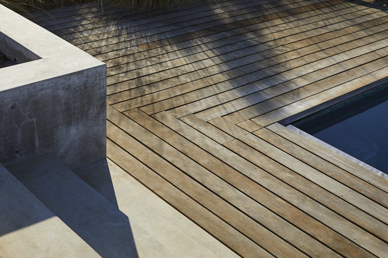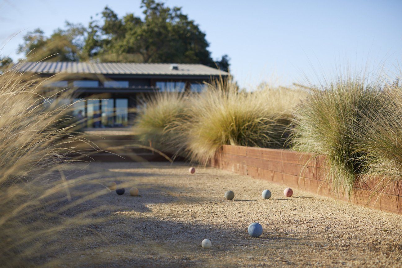Architectural elements designed to play off the architecture include the pergola over the outdoor kitchen and the fire pit in the pool courtyard.